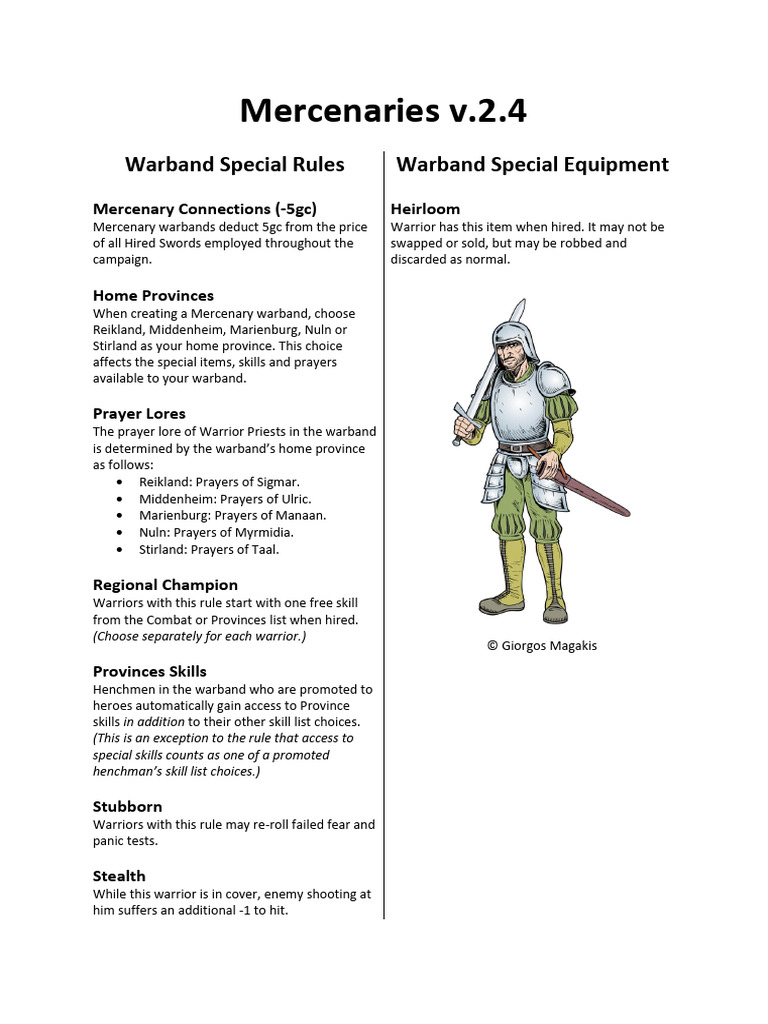Mercenary Equipment Lists