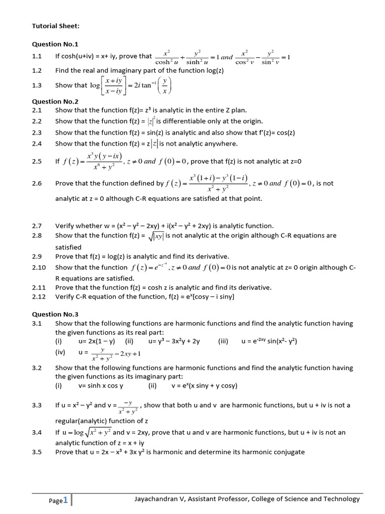 Page1 Jayachandran V, Assistant Professor, College of Science and Technology
