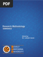 what period of tim will the study include what will be the sample d e , esign, what te chniques of data collection wi be used how wil the d ll , l ata be analyzed, and what will be the style of res earch rep ort. Suppose one , wants to study the problems faced by the collegesiated to Mumbai affil Universit , the arrangem y ent of m ethodolog will be as fo y llows: (a) The universe .e. population There are approximatel total four hundred i : y colleges attached to the university which are situ ated at M umbai, Thane, Ratnagiri etc (b) Selection ofsam pl s: Purposively twenty colleges are . e selected from Mumbai. (c) Reference perio 1995-96 to 2005 d: -06. (d) Techniques of anal ysis (Statistical tools) mean, median. mode. sta dard n deviation, correlation probability, chi-square ( square) t-test etc. , x , Selectio of appropriate statistcal tools is sole depe n i / ly nds on type and nature of parameters (sub-partsof hypothesis). 7. Tools to be u sed for collection of data: The task of data collection begins after a esearch problem has bee defined and research design r n chalked out The researcher would have decide which s of data h . to ort e would be using forhis study and a ccordingly he will have to select one or the other method of da collecton. For Pr ta i imary data one ha to take help , s of: (a) Questionnaire (b) Interviews and discu ssions ob servation For . Secondar data one has to ake help of: (a) Published Sources (b) Web y t Source (c) Annual Rep s orts etc. 8. Significance of the study should include: (a) what w you be : It ill going to add to he current literature? (b) how wi your proposed researc t ll h facilitate the decis ions of the poli maker (c) is your resea cy ? rch work like ly to create new direction to the present stock o f research? (d) will your work solve a long st anding problem tht peopl want to kno how to solve? a e w 9. Scope and limitations of the study: research is fre from No e limitation and wea s kness. These arise from methodological weaknes s, samplin imperfections, no responses, data inadequacies, measure g ment deficiencies and he like. Such lim t itations may vitiate the conclusions. Therefore a ca reful stateme of the limita nt tions and weakness of t study he should b made in order to enable the reader to j dge the validity of the e u conclus ions and the general worth of the stud. In the above case out of y four hundred colleg only twenty samples are selected for the study es . Practically it is not pos sible for th single researcher to r e each at every college and collect t e data; it is a functional limitation the study. h of Where as twenty selected sample colleges are exclusively from Mumbai region, it is a geographi limitation of the cal study. 10. Chapter Schem e of thesis/dissertation : Generall researcher y should mention te ntative chaper plann t ing of t e thesis, which at h least include: (a) I troduction, (b) Rev n iew of he literature, (c) Last topic t : Conclusions nd Suggest a ions. It should b noted that chapter planning is e totally based on number of hypothesis , problem and objectves created in s i the methodology. Researcher must mention in the ast paragraph of every l introduction f each chapter about theypothesis problems and objecti o h , ves it dealswith. Problem s: A re searcher may come across ith the following setbacks w during his esearch: (a) nothin has been writte on my re r g n search topic (b) , there is too much lite rature in this fi eld, (c) it's all been do (d) how to ne, select volume and variet of literature. (e conflicting arguments( D y ) ,