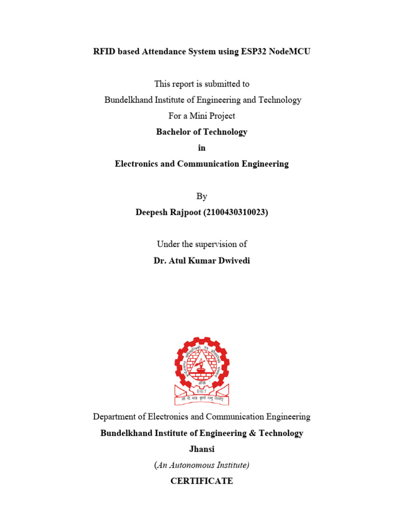 called RFID tag or label to send data to RFID reader. This IOT based project is for