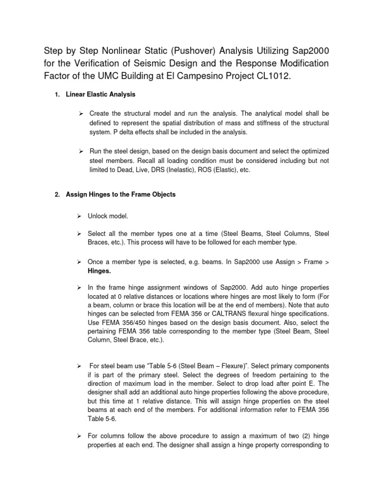 Step by Step Nonlinear Static (Pushover) Analysis Utilizing Sap2000