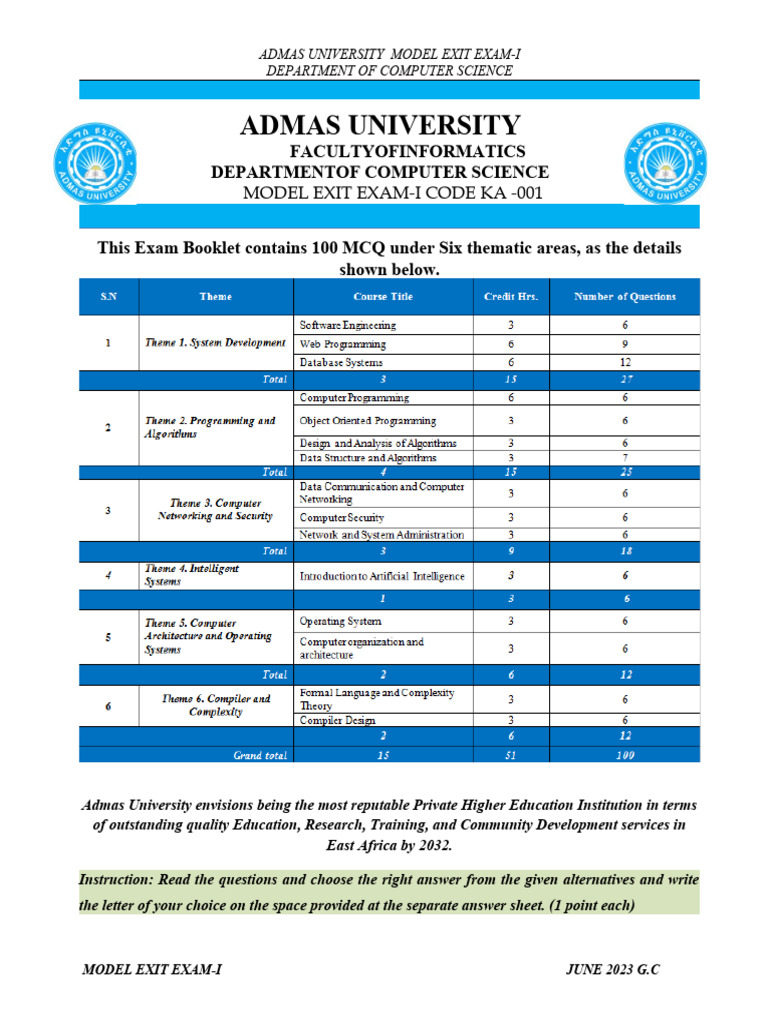 ADMAS UNIVERSITY MODEL EXIT EXAM-I