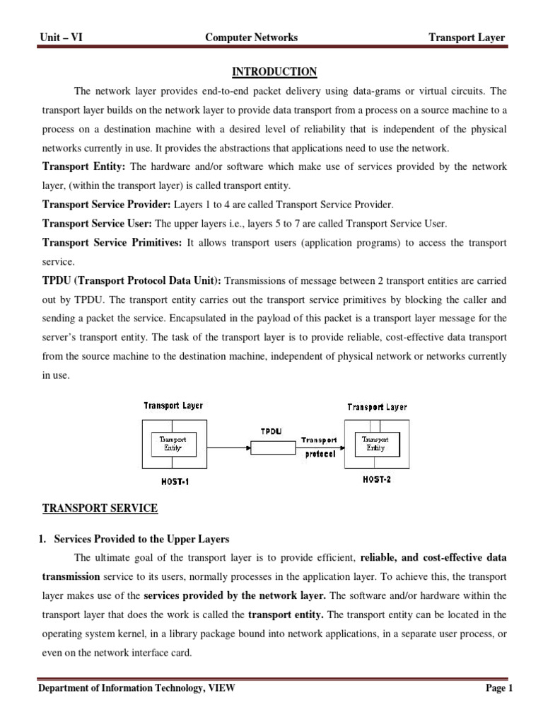 server’s transport entity. The task of the transport layer is to provide reliable, cost-effective data transport