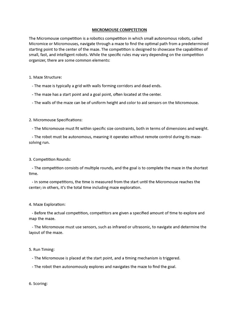 Micromouse competition they are entering, as these can vary between events and organizers. The