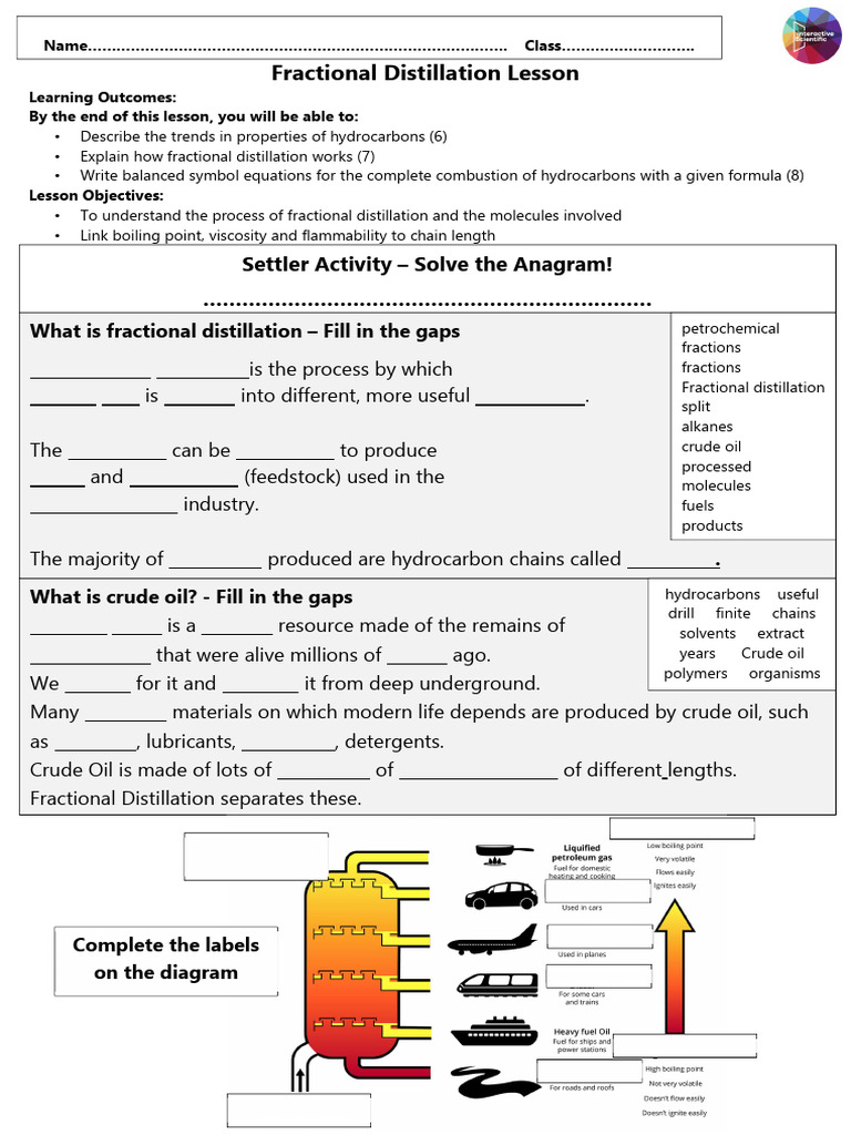 • Write balanced symbol equations for the complete combustion of hydrocarbons with a given formula (8)