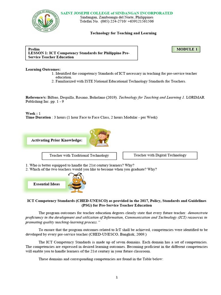 LESSON 1: ICT Competency Standards for Philippine Pre-