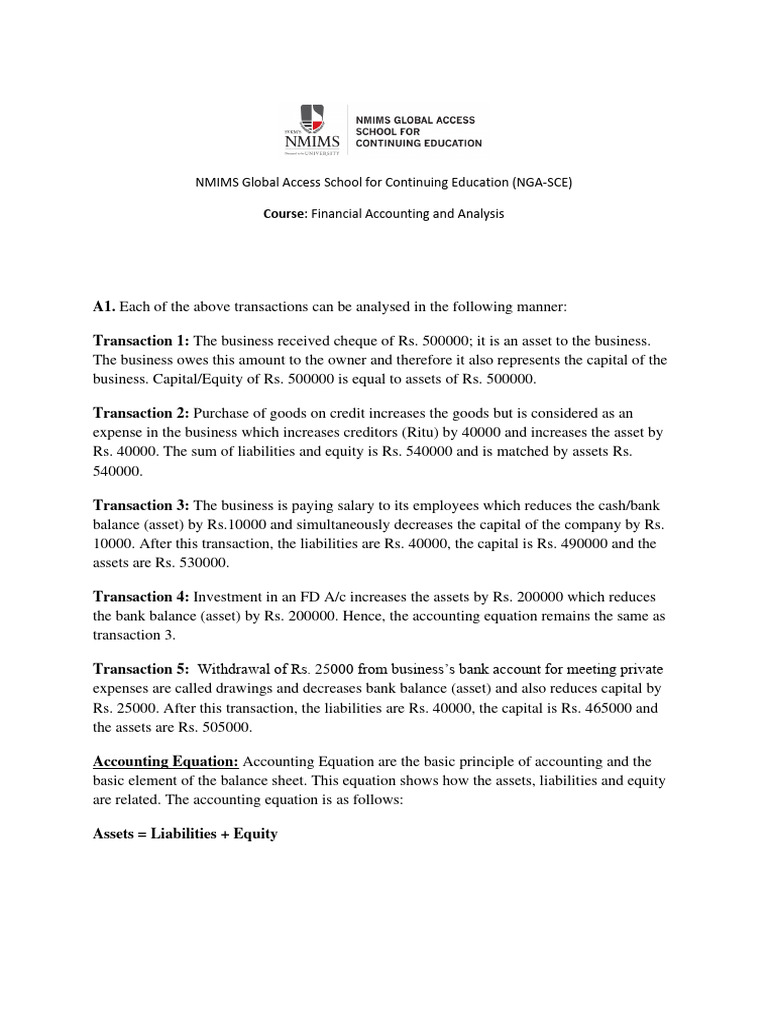 A1. Each of the above transactions can be analysed in the following manner: