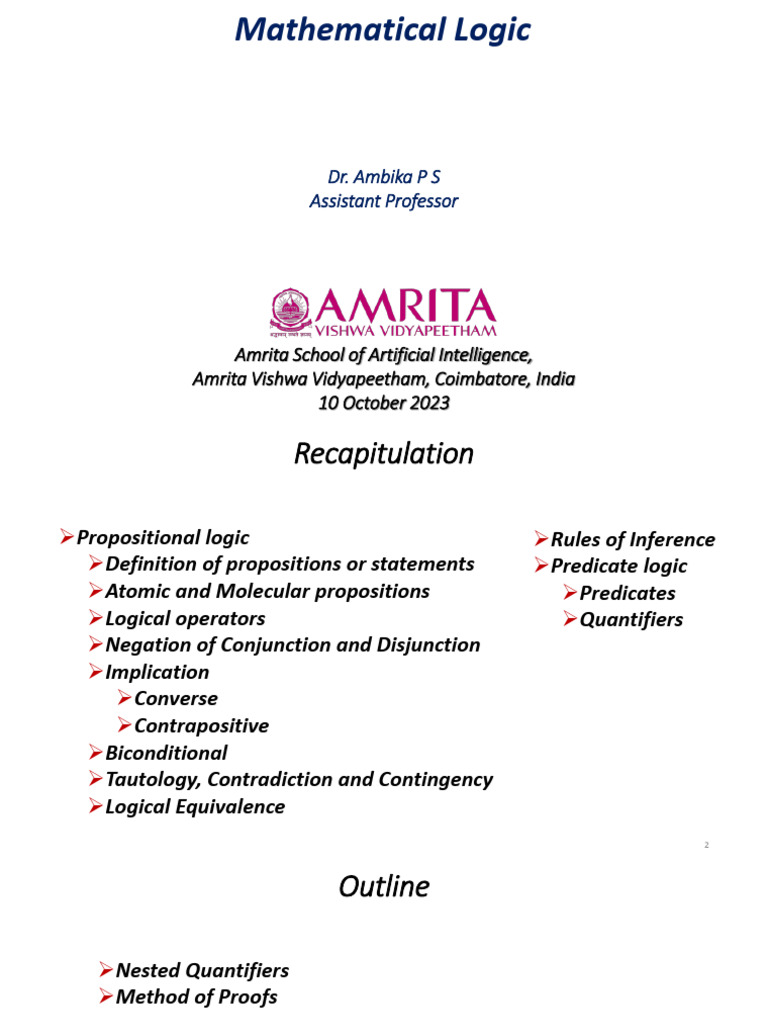 ➢Definition of propositions or statements ➢Predicate logic