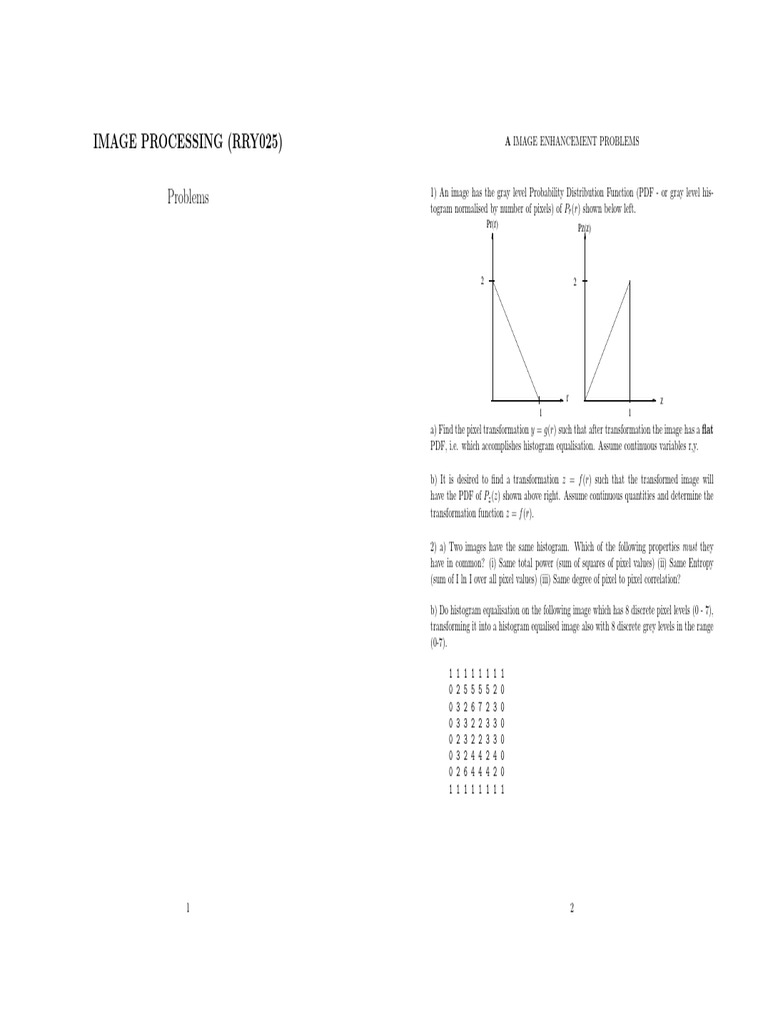 1) a) Histogram equalisation. Find the transfer function y = g(r) which goes from pr (r) =