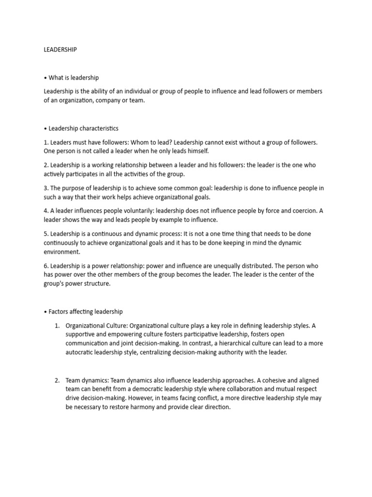 • Factors affecting leadership