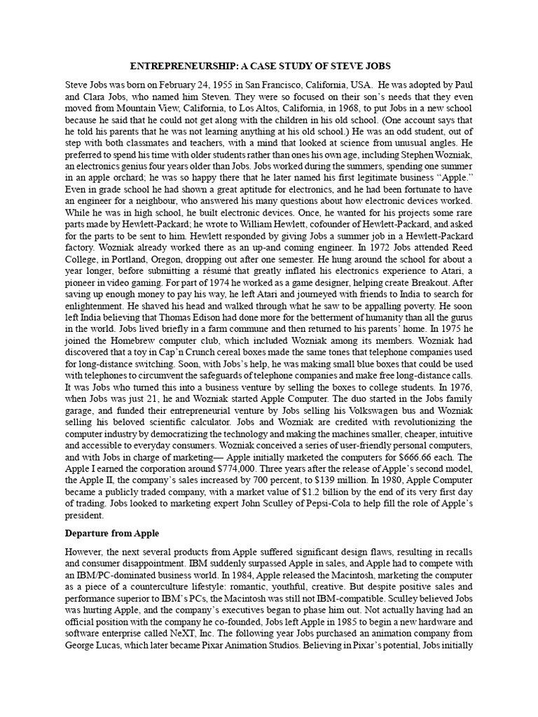 ENTREPRENEURSHIP: A CASE STUDY OF STEVE JOBS