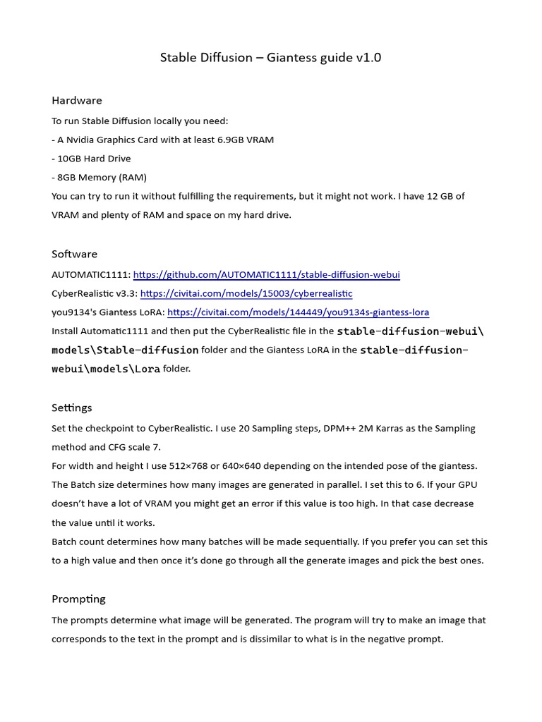 For width and height I use 512×768 or 640×640 depending on the intended pose of the giantess.