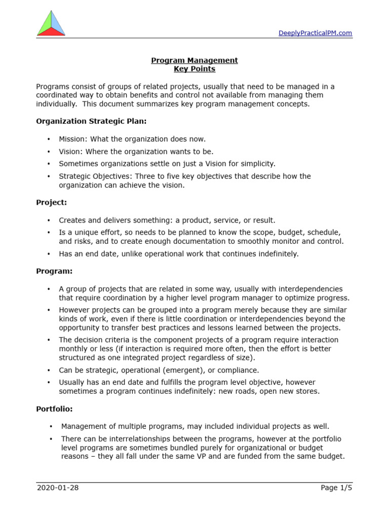 individually. This document summarizes key program management concepts.