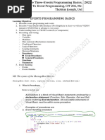 The events we have been using so far are a special form of procedure known as an event procedure. For example, associating code with a CommandButton to quit an application is a procedure. The basic Syntax for a procedure is: [Private | Public][Static] Sub procName ([arglist]) Parts of the Procedure Part Public Description Indicates that the procedure is available to all modules. If Option Private is used in the module, the procedure is not available to modules outside of the project. Indicates that the procedure is only available to other procedures or functions in the current module or form. Indicates that all variables declared within the procedure are retained, even when the procedure is out of scope. The name of the procedure. Must be unique to the module if declared Private, otherwise unique to the project. The name of the procedure follows the naming rule for Variables. A list of variables passed to the procedure as arguments, and their data types. Multiple arguments are separated by commas. Arguments may be Optional, and may be Read Only.