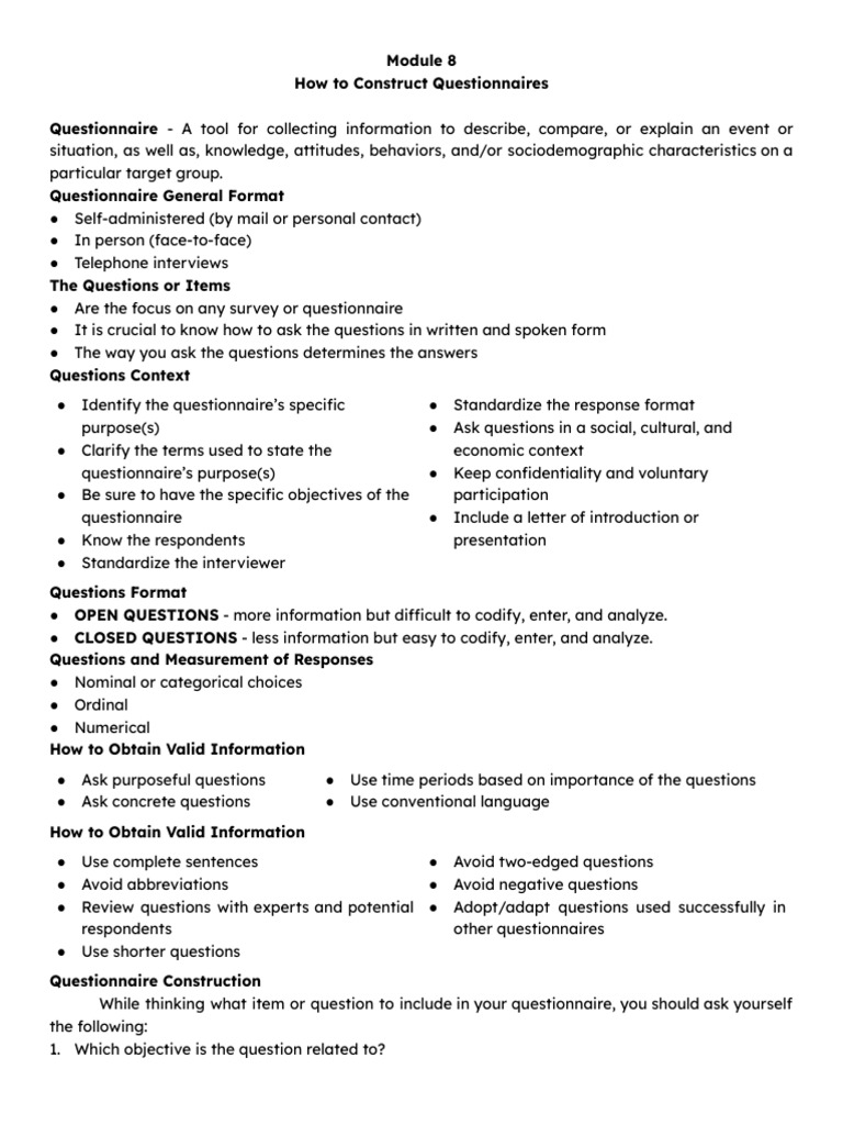 HOW TO CONSTRUCT A QUESTIONNAIRE