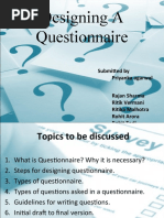 You need to introduce a number of sections or categories for the questionnaire. Give these