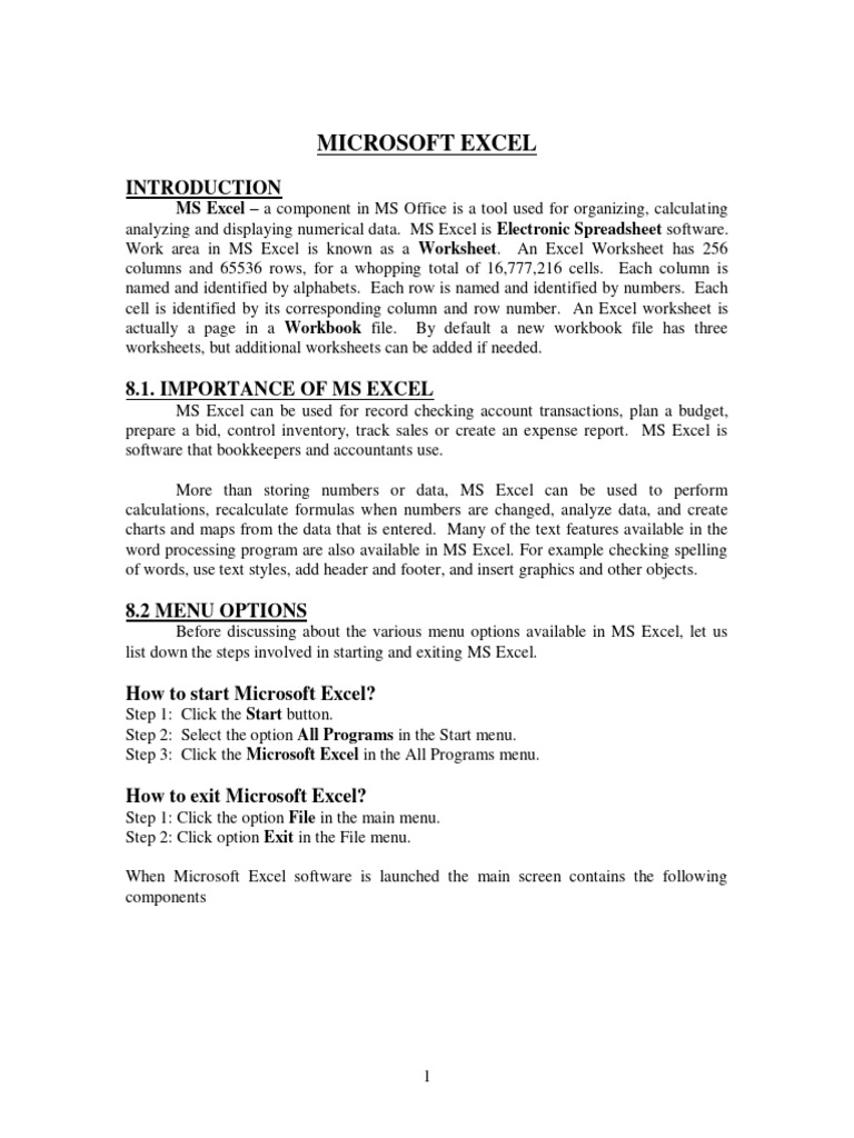 prepare a bid, control inventory, track sales or create an expense report. MS Excel is