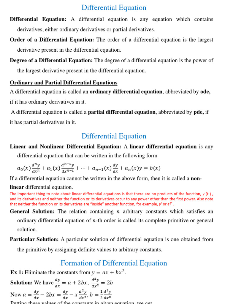 Differential Equation: A differential equation is any equation which contains