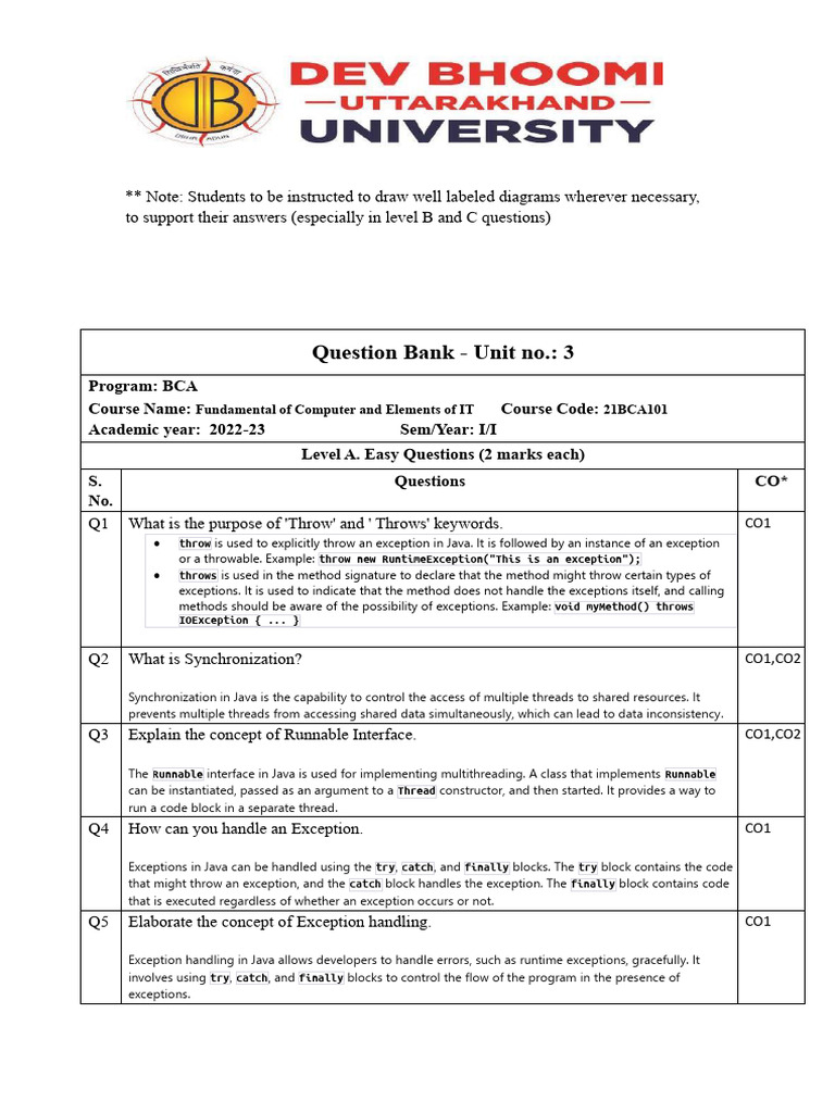 Q27 Explain the fundamentals of Exception Handling and the exception types. CO2,