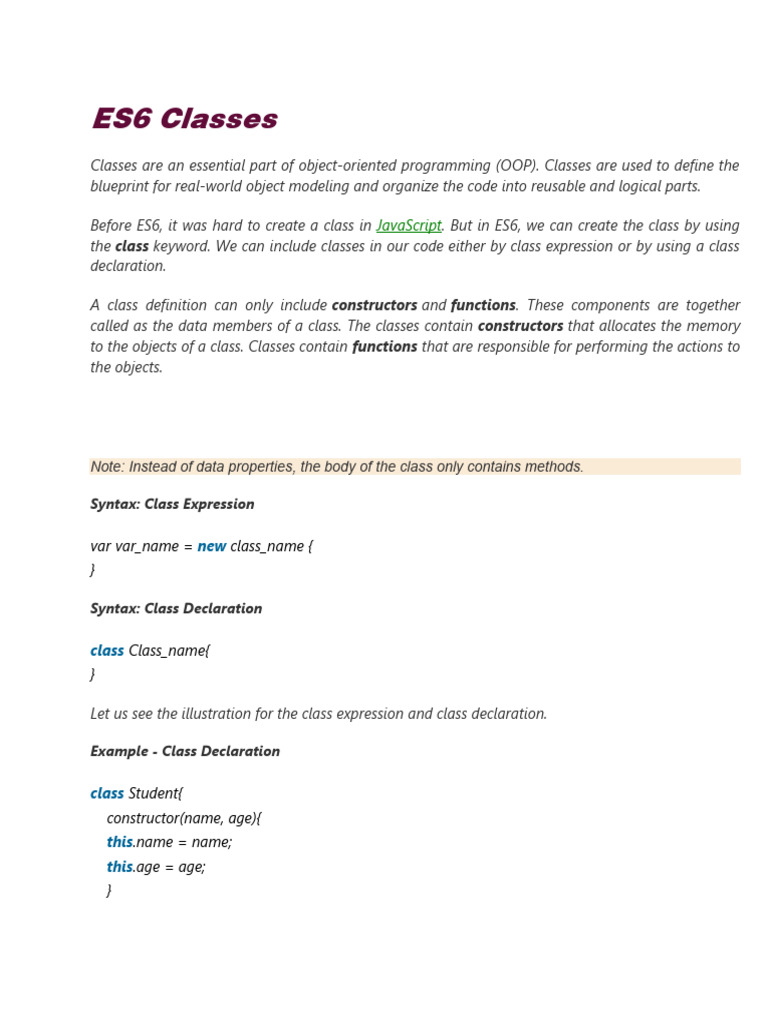 Before ES6, it was hard to create a class in JavaScript. But in ES6, we can create the class by using