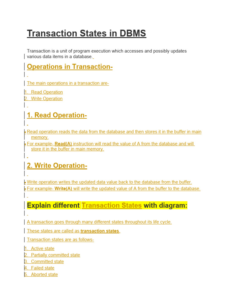 For example- Write(A) will write the updated value of A from the buffer to the database.