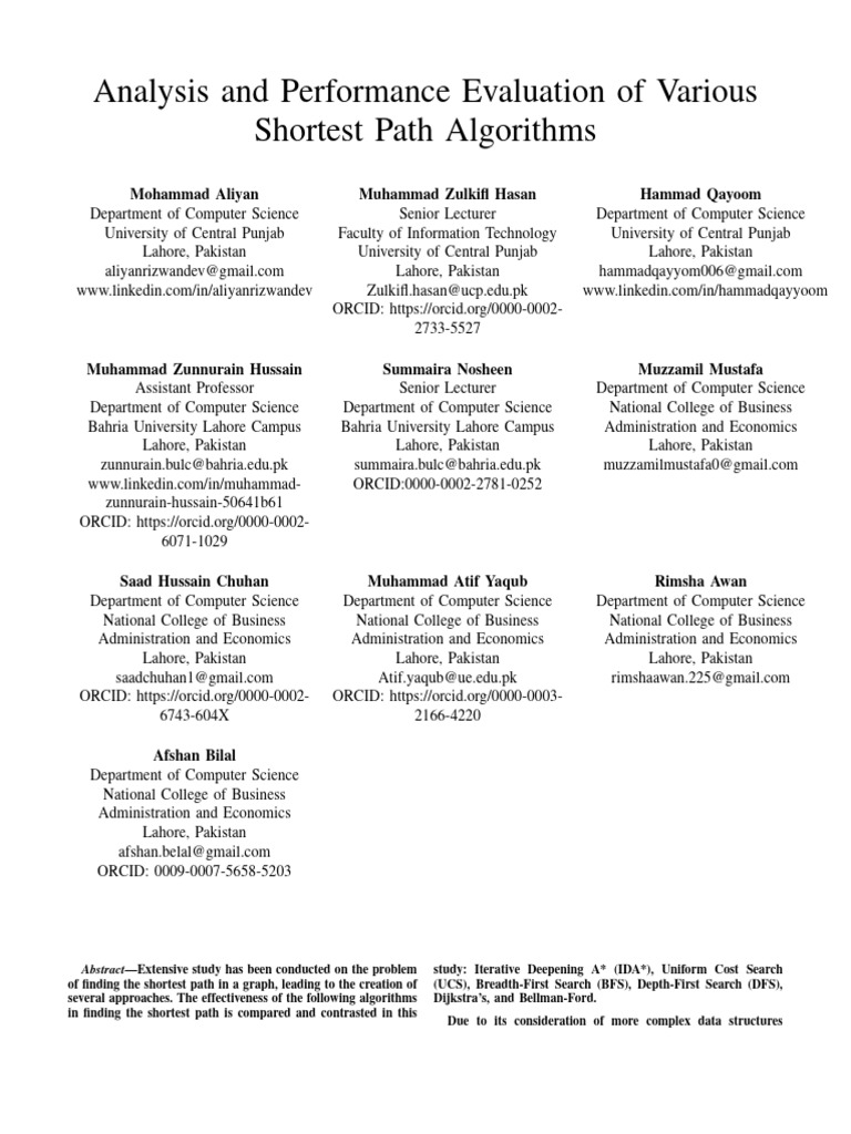 ing the graph’s characteristics, the presence of negative weights, graphs. Applications for it are found in many fields, including