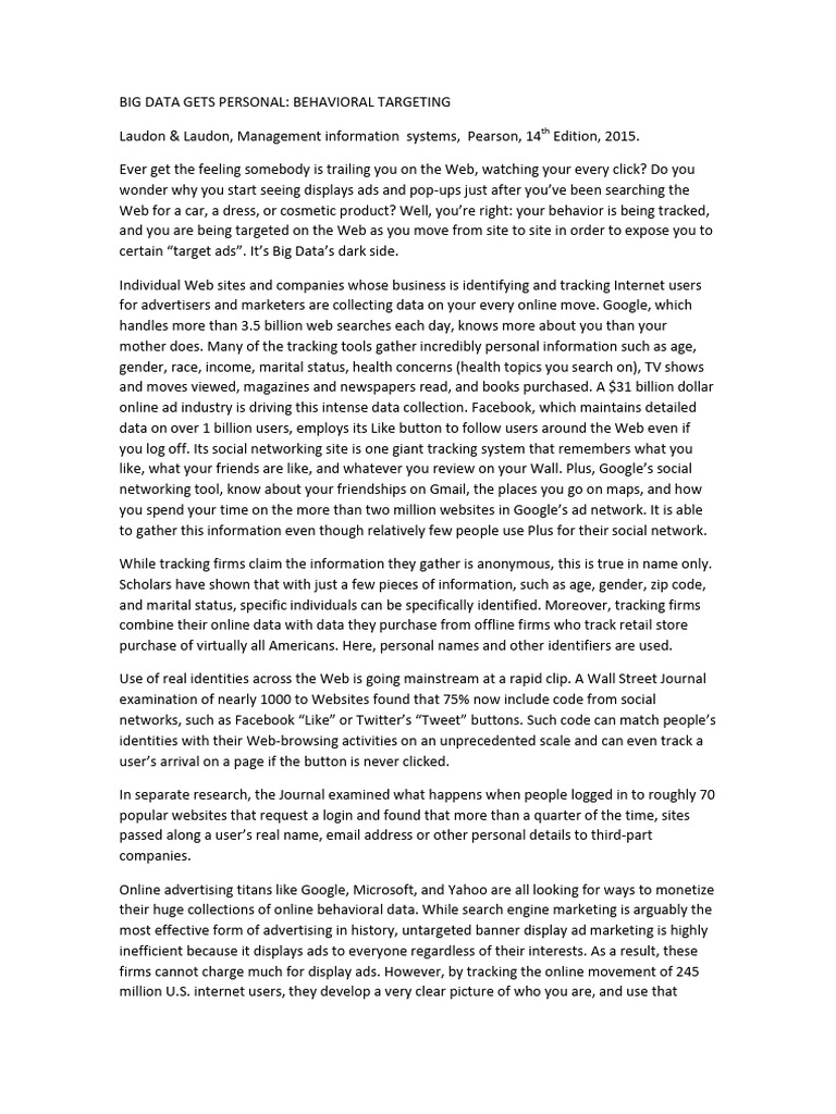 BIG DATA GETS PERSONAL: BEHAVIORAL TARGETING