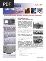 pass/fail criteria (20 ft lbs) developed when investigating ship failures. Moreover, the designation of a Charpy value at a defined low temperature does not mean that the steel is only suitable for use at that temperature. The phenomenon of lowtemperature brittle fracture is more complicated, and other risk factors are material thickness (Burdekin, 1999) and whether or not the steel has been welded (TWI, 1971). A second, and separate, property that can be defined and selected by a designer is to use steel with guaranteed throughthickness properties to avoid lamellar tearing. Such steel is designated as having Z quality ductility and steels are available with various amounts of ductility. Codes such as BS EN 19931-10: 2005(E) (BSI, 2005) give guidance on requisite risk factors and grade selection but a key factor is the application of high stress, or strain, in a direction normal to the steel rolling direction. Lamellar tearing is characterised by a plate of steel splitting along its length. Application of high stress might be due to in-service loading but is more commonly associated with high shrinkage strains imposed during welding (i.e. when the cooling shrinkage is restrained). Risk factors include the use of thick steel. Other risk factors include the presence of a large number of non-metallic inclusions within the steel; Z quality steels are clean steels with very low sulphur content. In manufacture, steel toughness is achieved by a number of means, two of which are control of hardness and control of microstructure. A hard steel is one that has low resistance to crack growth and so hardness needs to be carefully controlled. In everyday engineering, hardness can be increased by the application of high heat followed by rapid cooling, such as may occur in uncontrolled welding or flame cutting. Overall, a designers first responsibility is the selection of a steel that is appropriate to the service conditions and the method of fabrication. In normal design this is straightforward, but selection becomes specialised when casting is involved. In those circumstances more care is required. This follows partly because the steel is thicker and partly because there is a more direct responsibility on the parties involved to assign appropriate ductility and toughness values. The dangers are real, as illustrated by press reports on the failure of certain cast cable anchorages on the Glasgow Clyde arc bridge in 2008. The Standing Committee on Structural Safety has issued a topic paper on castings (Scoss, 2010).