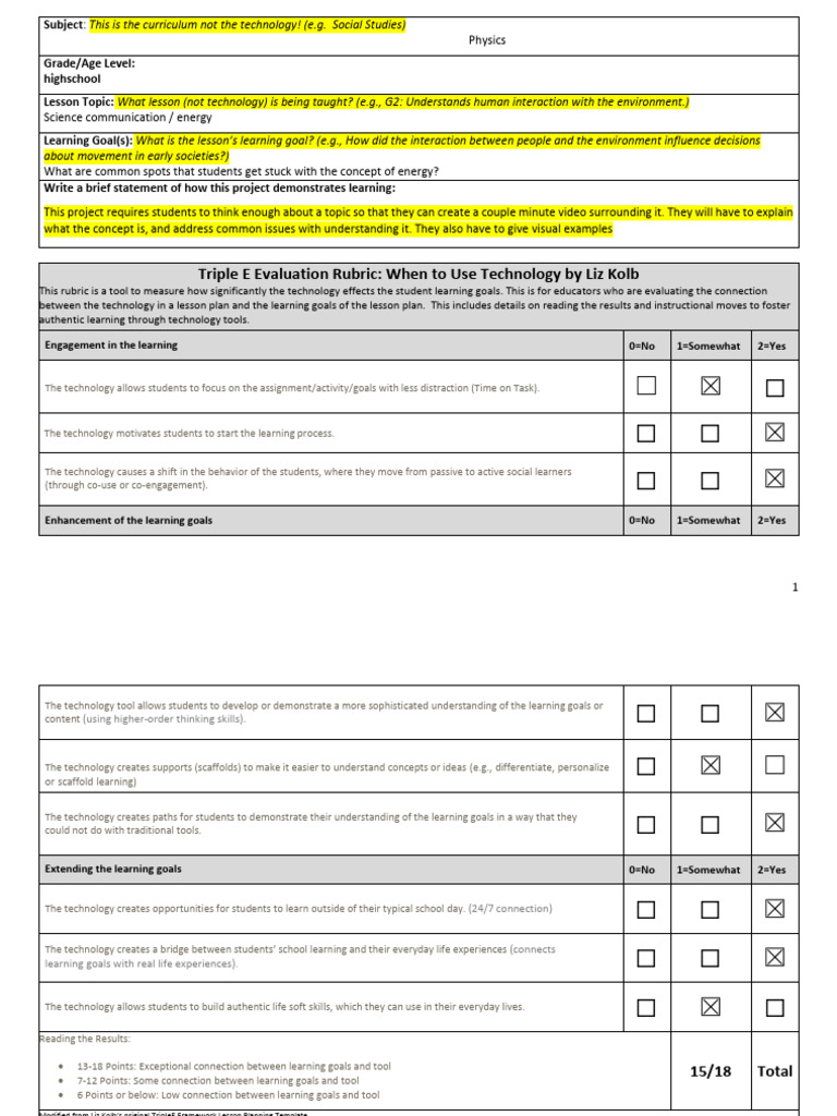 Triple E Evaluation Rubric: When to Use Technology by Liz Kolb