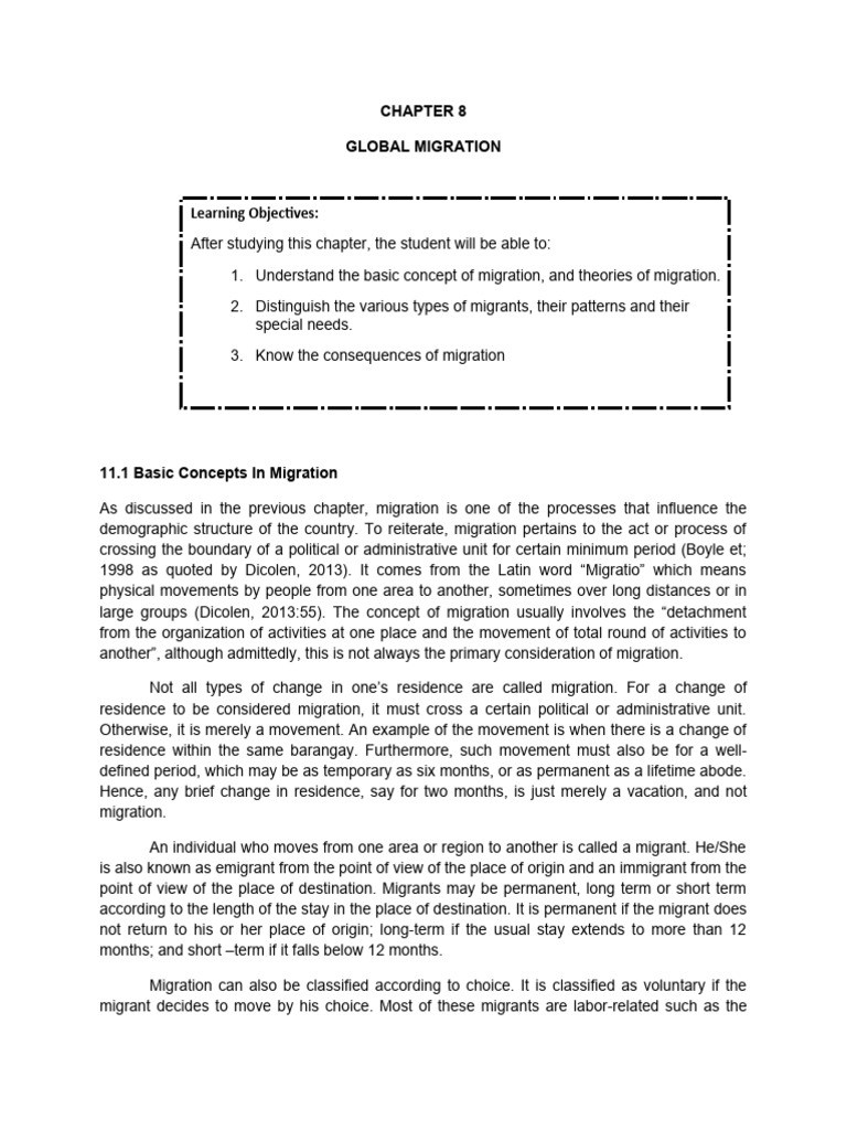 1998 as quoted by Dicolen, 2013). It comes from the Latin word “Migratio” which means