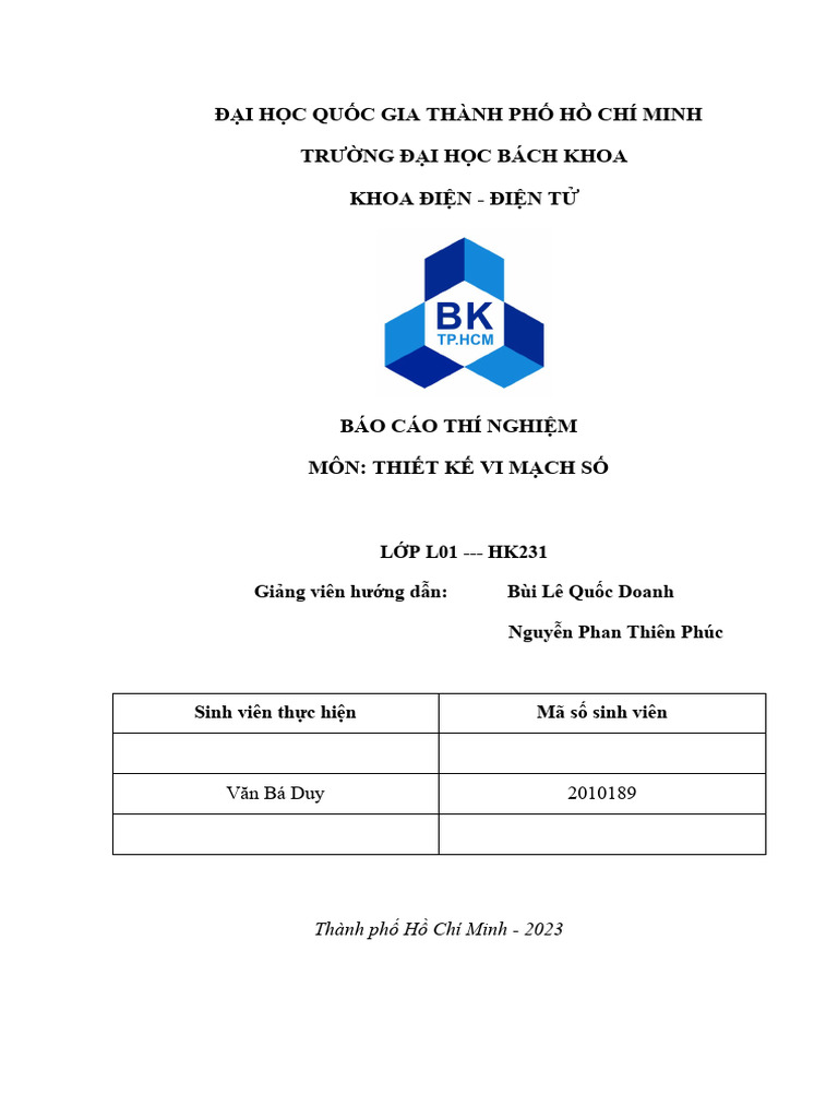 MÔN: THIẾT KẾ VI MẠCH SỐ