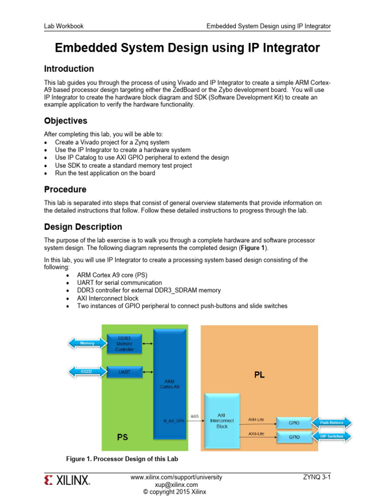 In this lab, you will use IP Integrator to create a processing system based design consisting of the
