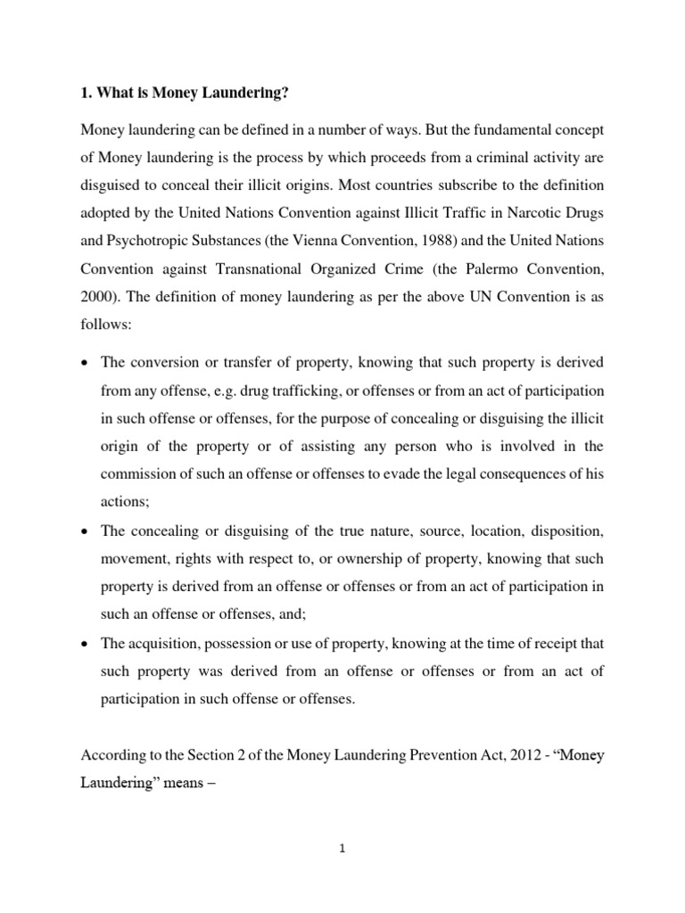 According to the Section 2 of the Money Laundering Prevention Act, 2012 - “Money