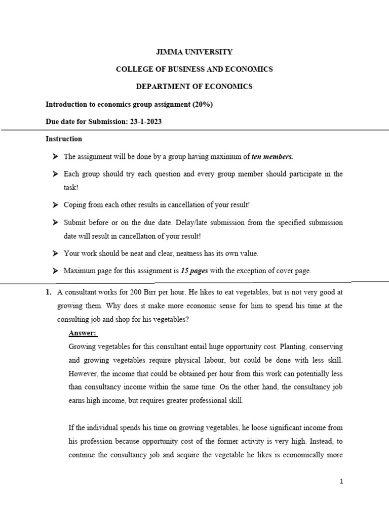Introduction to economics group assignment (20%)