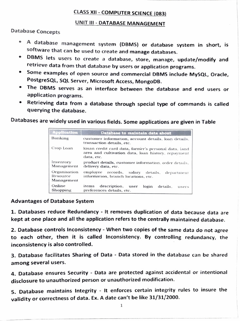 5. Database maintains Integrity - It enforces certain integrity rules to insure the