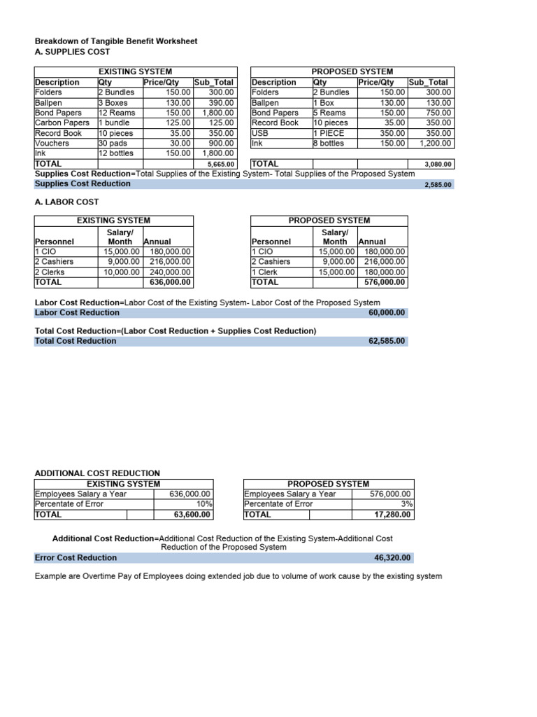 Breakdown of Tangible Benefit Worksheet