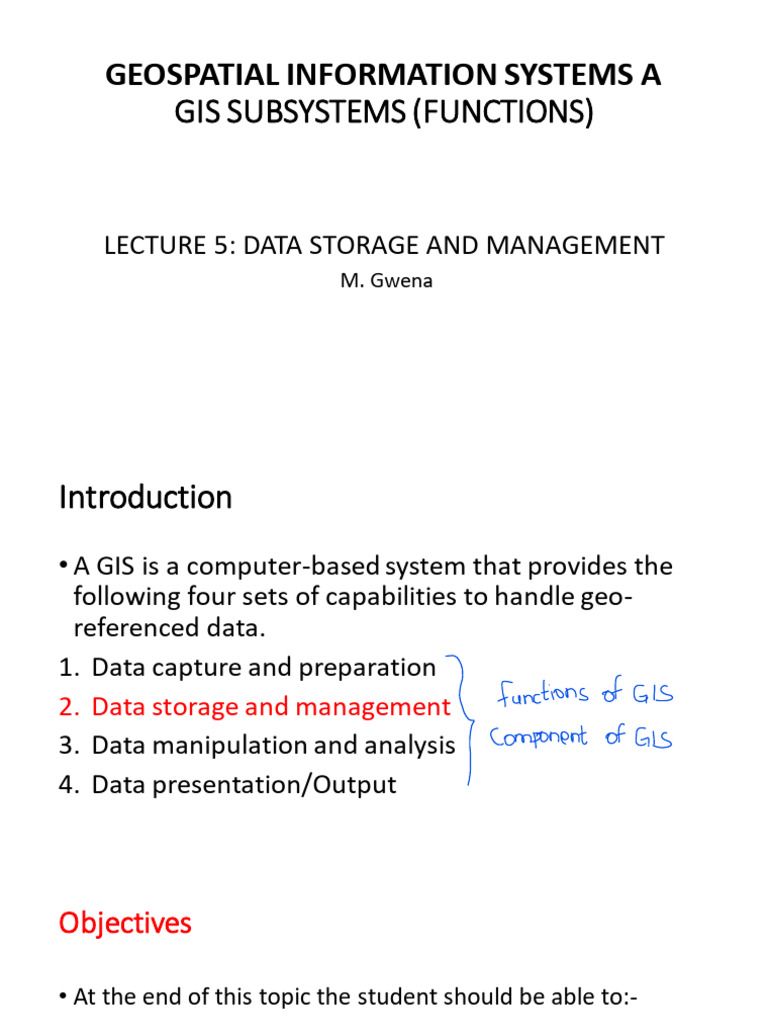 • The second component/function of a GIS is the data storage and retrieval