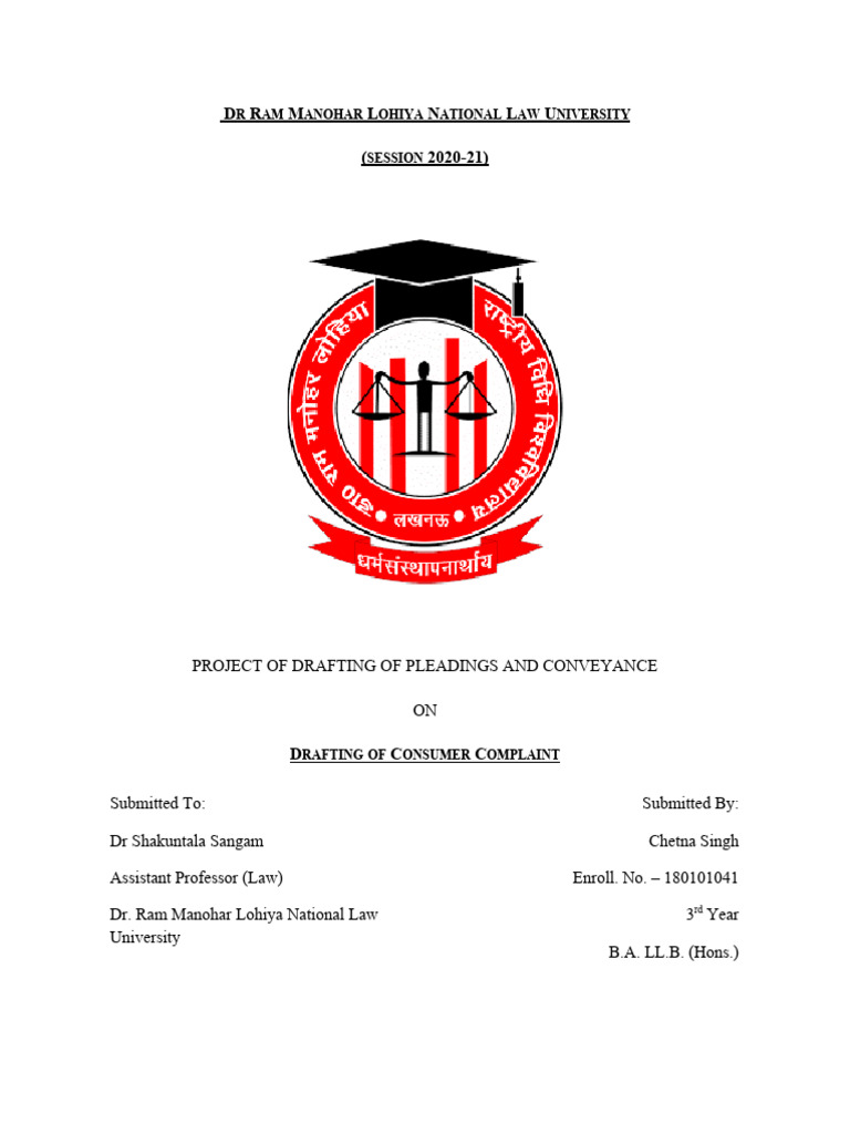 National Consumer Forums. Getting onto drafting, the leading statute i.e. The Consumer