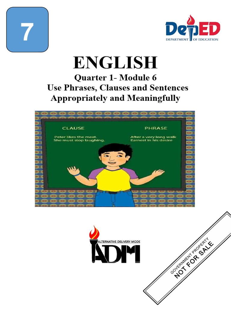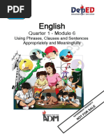 Quarter 1– Module : Use Phrases, Clauses and Sentences appropriately and
