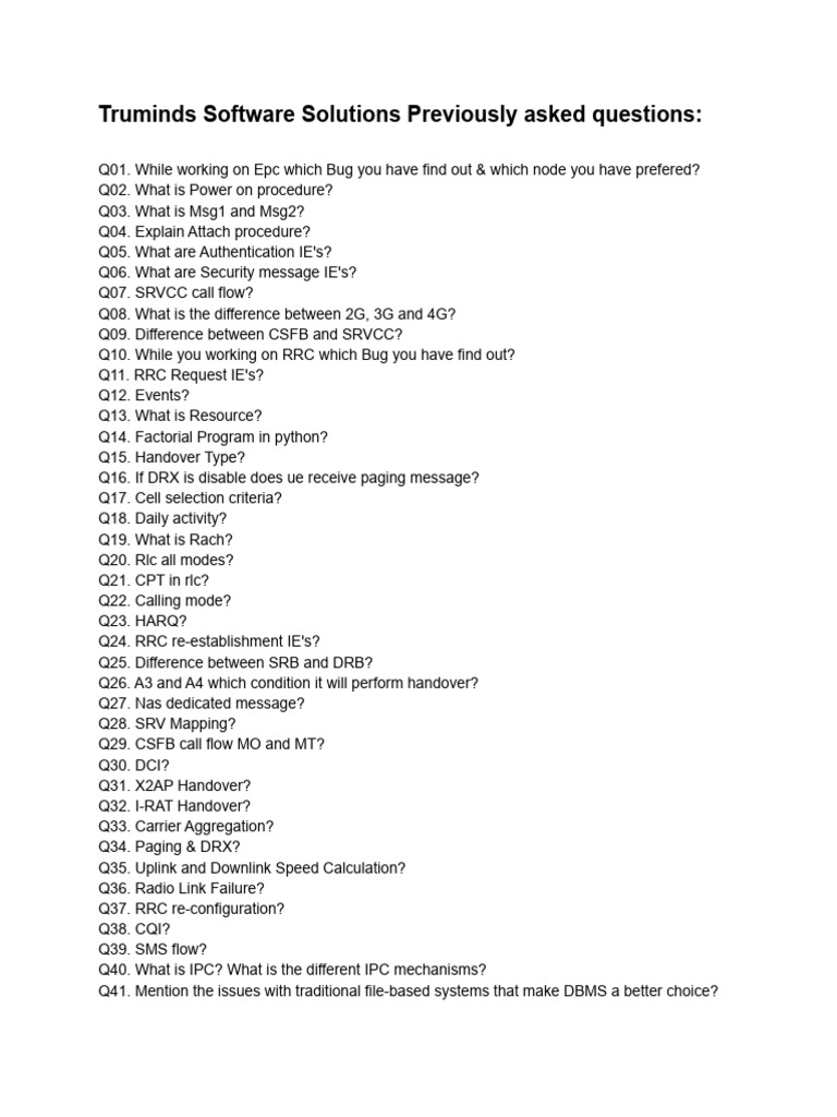 Truminds Software Solutions Previously asked questions: