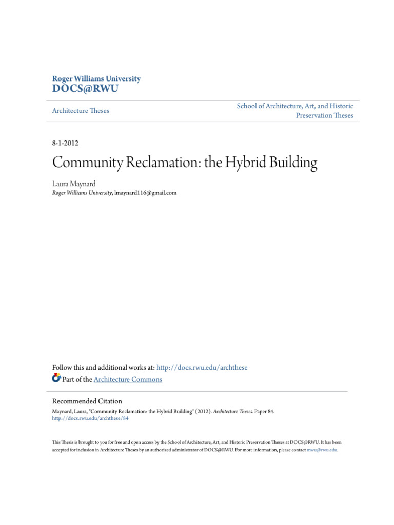 Maynard, Laura, "Community Reclamation: the Hybrid Building" (2012). Architecture Theses. Paper 84.