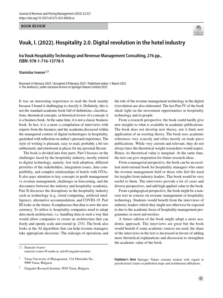 such as technology (e.g. cloud computing, artificial intel- core text in courses on revenue management or hospitality