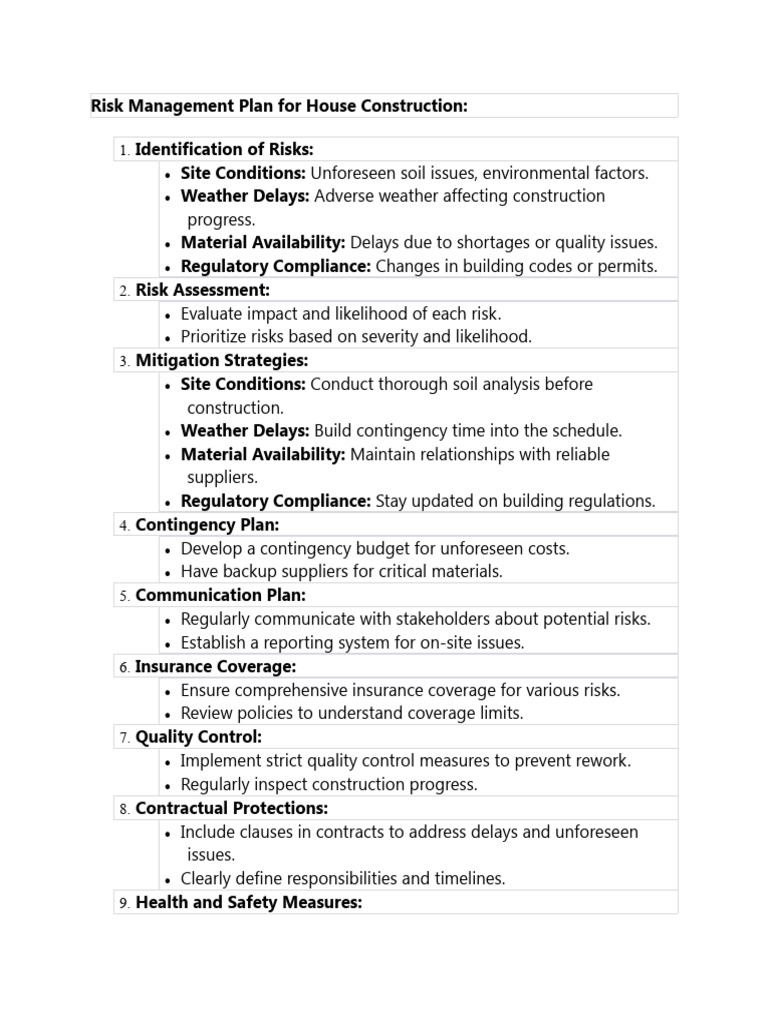 Site Conditions: Unforeseen soil issues, environmental factors.
