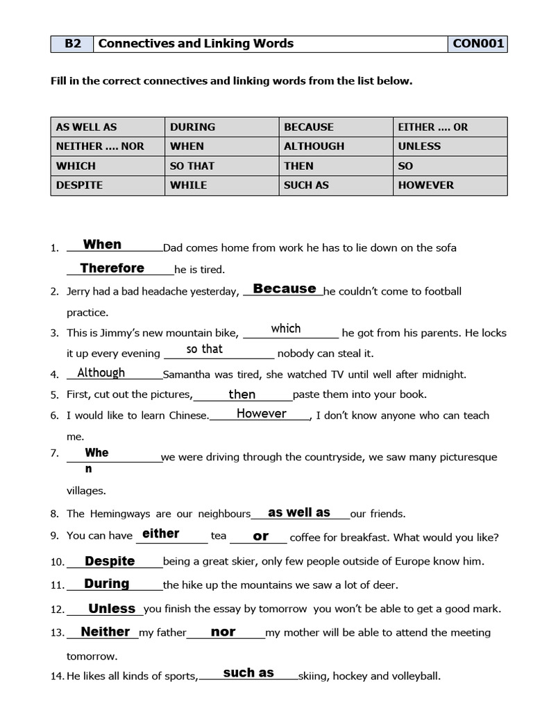 AS WELL AS DURING BECAUSE EITHER …. OR