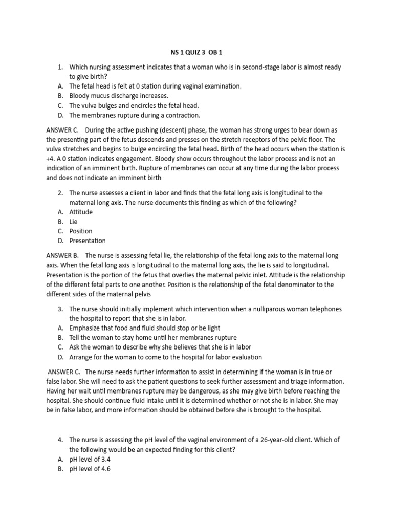 1. Which nursing assessment indicates that a woman who is in second-stage labor is almost ready