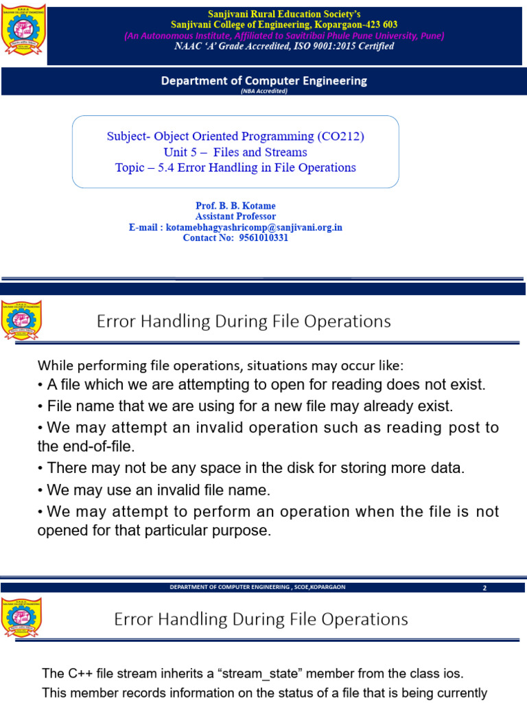 file >> data; DEPARTMENT OF COMPUTER ENGINEERING , SCOE,KOPARGAON 7