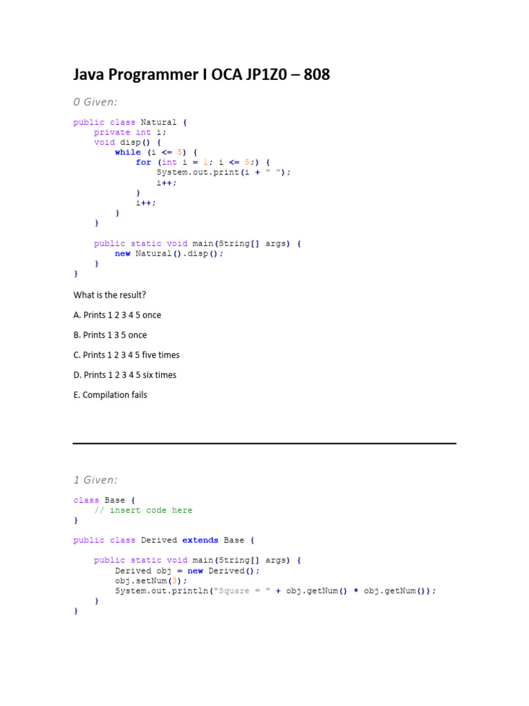 Which three lines, when inserted independently at line n1, cause the program to print a 0