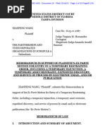 support of Plaintiff’s Ex Parte Motion for Entry of Temporary Restraining Order and Expedited