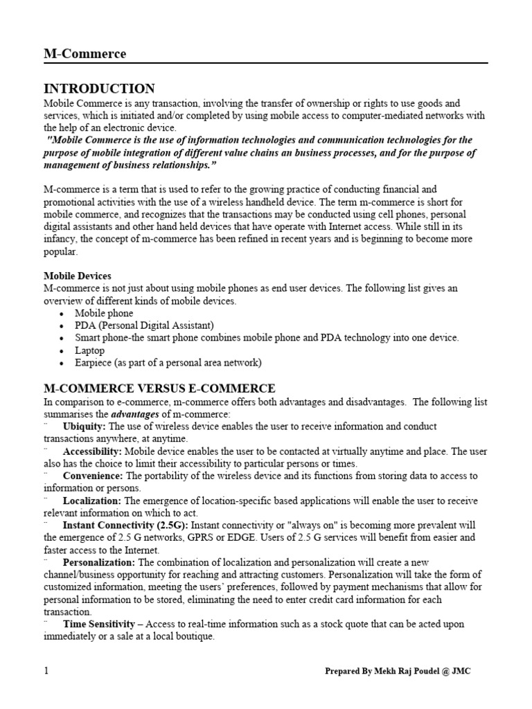being conducted over cellular and mobile devices. M-Commerce originated sometime during the