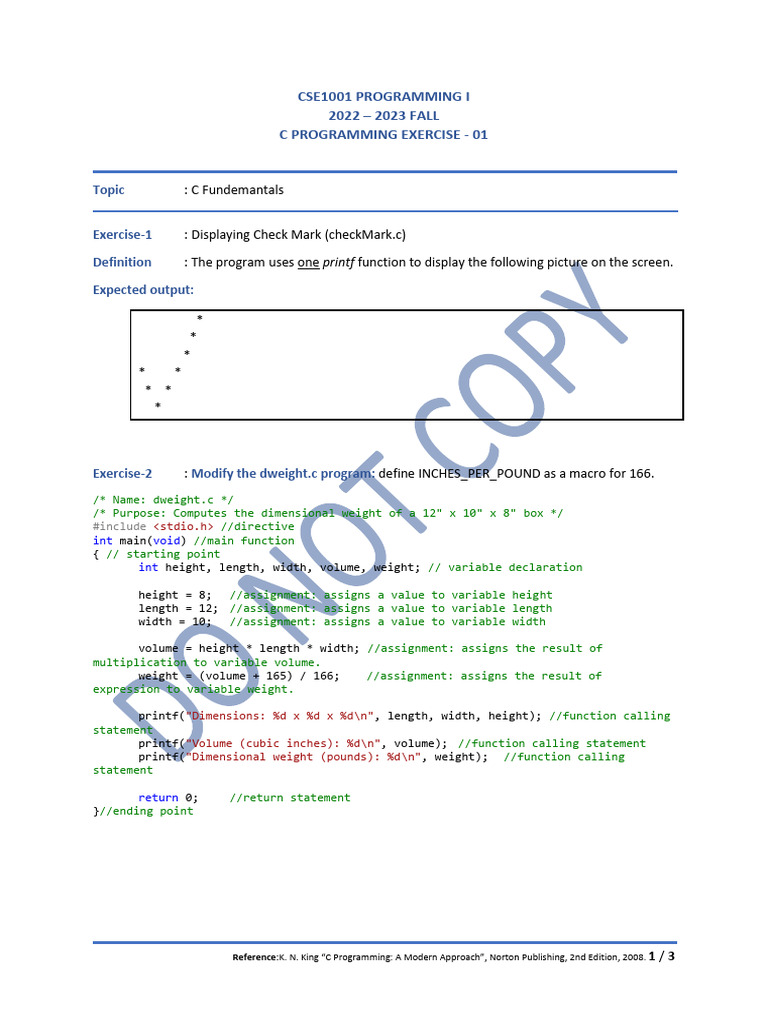 Reference:K. N. King “C Programming: A Modern Approach”, Norton Publishing, 2nd Edition, 2008. 1 /3